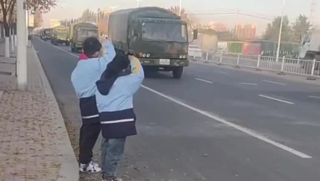 小學生遇軍車駐足敬禮 解放軍戰士鳴笛回禮