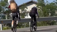 小伙騎行途中遇到老奶奶 幫對方把背簍背上坡