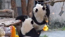 大熊貓“渝可”從吊橋掉下來 還不忘緊緊抱住妹妹“渝愛”