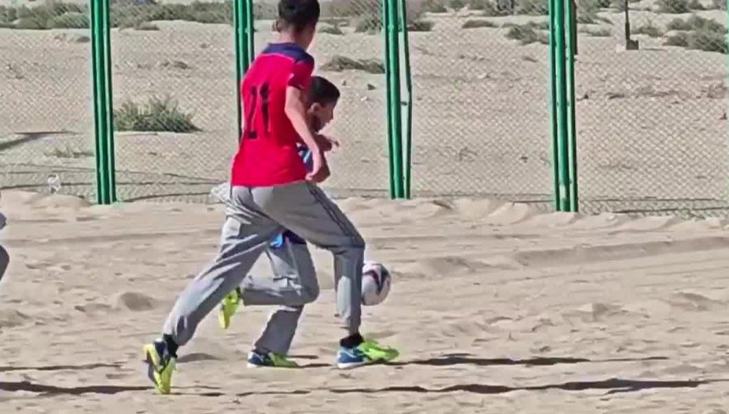 新疆少年沙地里踢足球 萬水千山熱愛無阻
